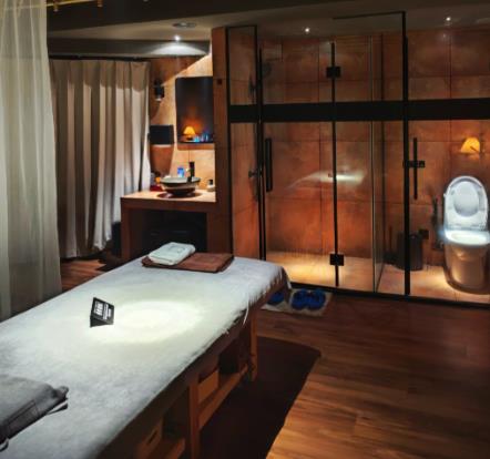 | 会员卡优惠: | 8.0折, 一场水疗就是一个温暖的故事,一场spa就是一次浪漫的旅程,高端spa馆,让诗和远方变得触手可及。(深红与墨绿的搭配,让房间里洋溢着一种复古而奢华的气息) |